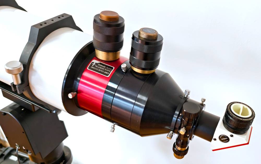 Prodej speciálního slunečního dalekohledu 150/1000 mm Lunt LS152 THa s druhým etalonem (double stack) zajišťujícím finální propustnost cca 0.55 Ang. Oba etalony tlakově laděné (lze používat jako single i double stack). Blokační filtr B1800, funkční nezkorodovaný. Okulárový dvourychlostní výtah FeateTouch.