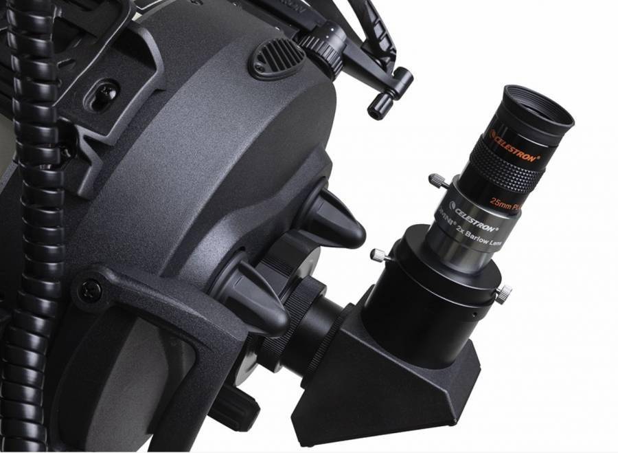 Kompletní pokročilý dalekohled konstrukce Schmidt-Cassegrain 235/2035 mm (f/10) EDGE HD je umístěn na inovované polovidlicové azimutální GoTo montáži NexStar Evolution, doplněný o systém automatického ustavení StarSense.. Oproti modelu NexStar SE přináší verze Evolution róbustnější základnu, která obsahuje i dobíjecí baterii na cca 10 hodin provozu, dále WiFi modul, umožňující řízení dalekohledu přes toto rozhraní z tabletů či chytrých telefonů iOS či Android resp. z jejich astronomických aplikací. Průvodce aplikaci naleznete zde. Příjemným vylepšením jsou i dvě odkládací poličky na příslušenství. V základní výbavě je 2” zenitové zrcátko s redukcí na 1.25”, okulár Plössl 25 mm pro zvětšení 90x a barlow násobič Omni 2x pro zvětšení 180x. Hledáček StarPointer Pro typu červený bod. Vedle 3 portů a portu pro připojení ručního ovladače (HC) je v postavě integrován i USB port pro napájení USB zařízení.